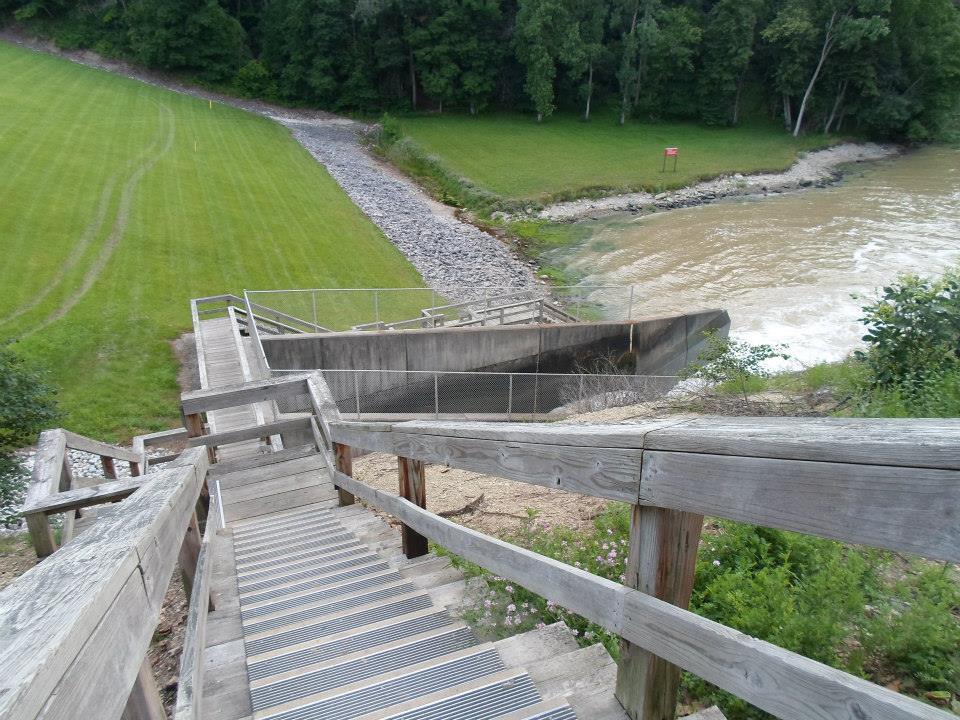 The sandbag carry involved going under a wooden bridge that you had to bend at the waist to fit under, and there was a sunken log to stumble over under the water. I fell flat on my face, but managed to keep the sandbag balanced on my shoulder and above water.