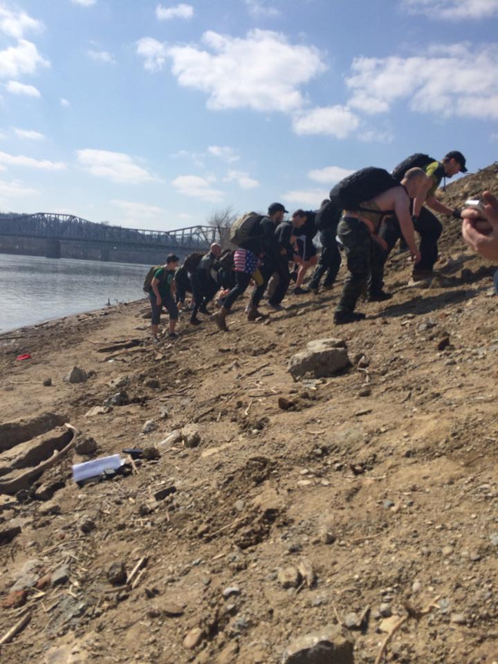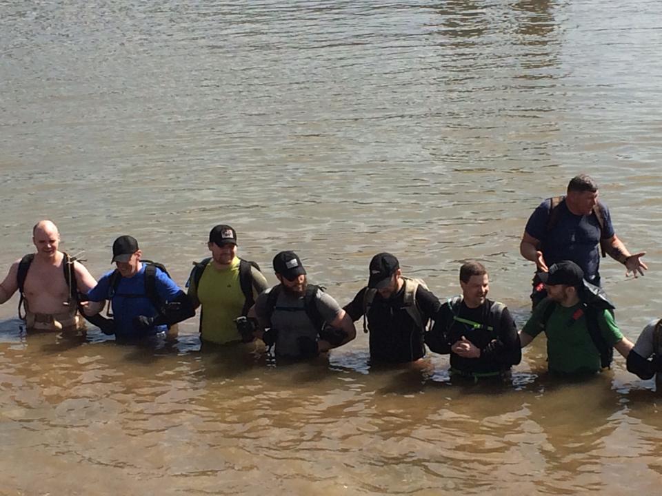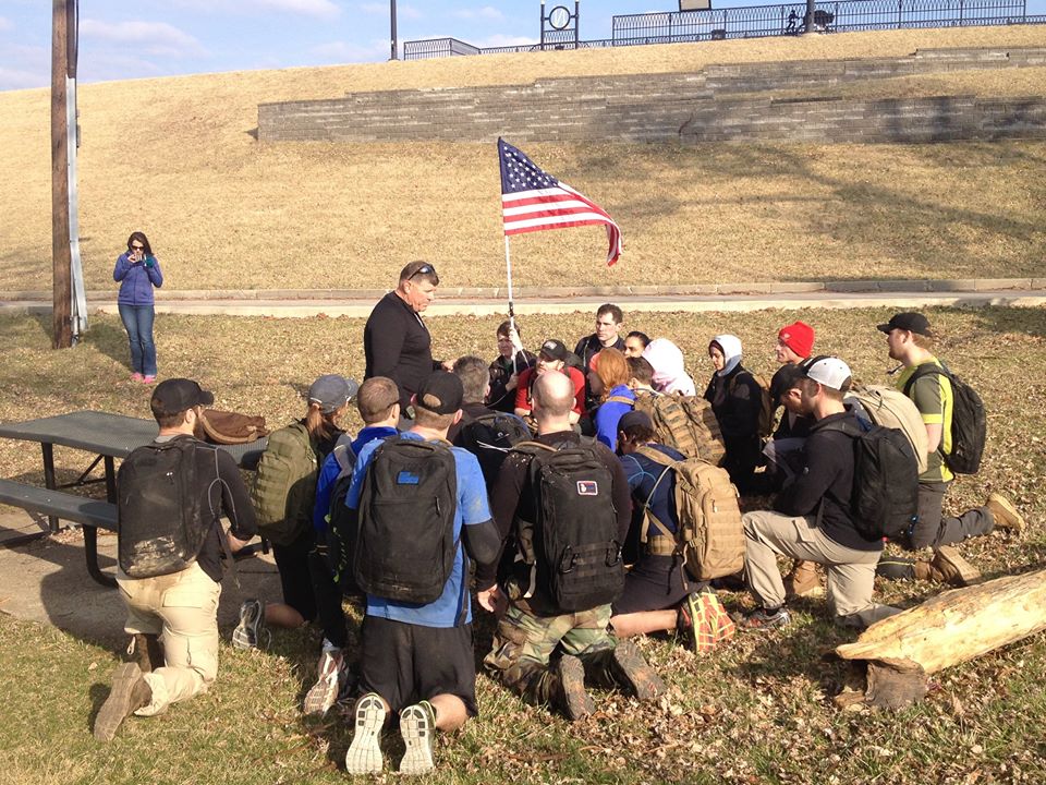 I arrived a touch late to this event and lined up expecting the usual welcome party PT session. Cadre “Big Daddy” John introduced himself, told us his background, had us do a little PT, then told us to remove our left shoes and follow him.