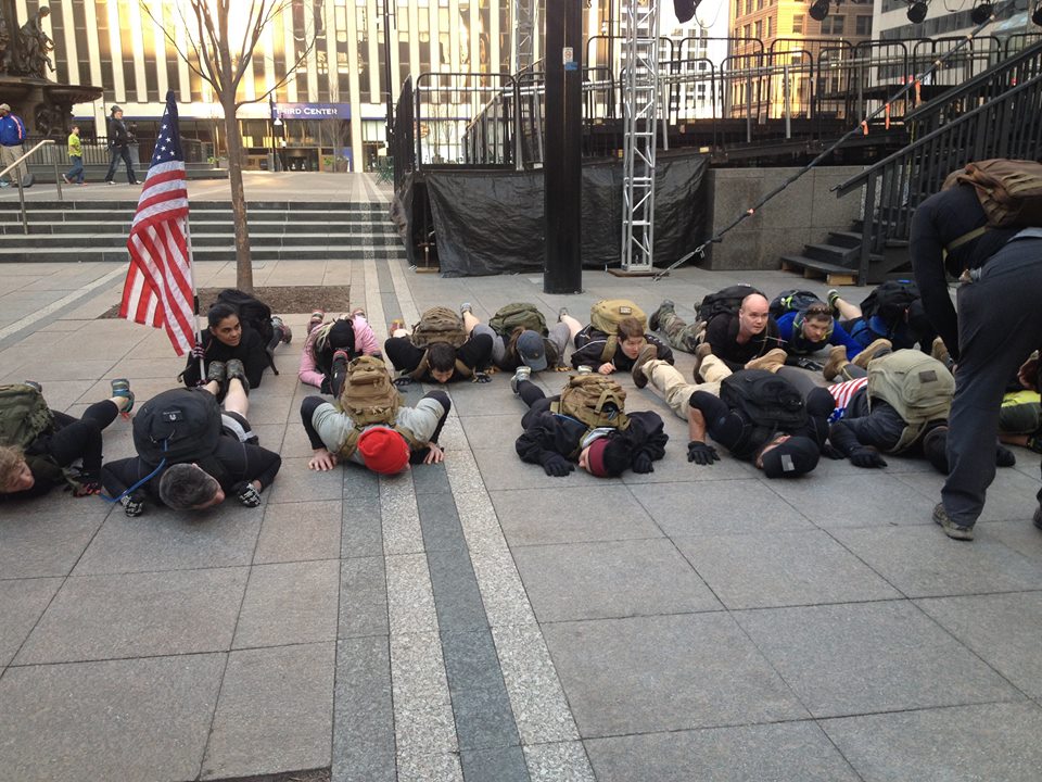 We got back to our start point. Big Daddy said a few words on what we had accomplished, ran us through pushups with all of us shouting “Attention to detail” “Teamwork breeds success” “GORUCK” “Tough”