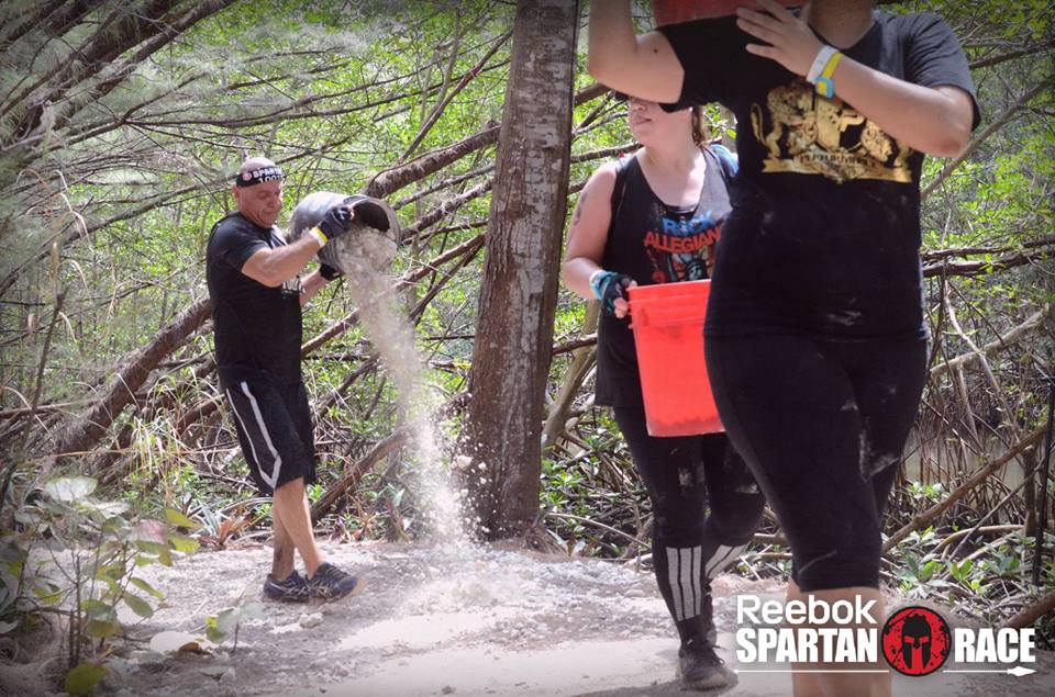 Usually the guy is getting called out, but the shadow in the bucket shows that the woman has done the same thing, dumping most of the load required to be carried through the course.