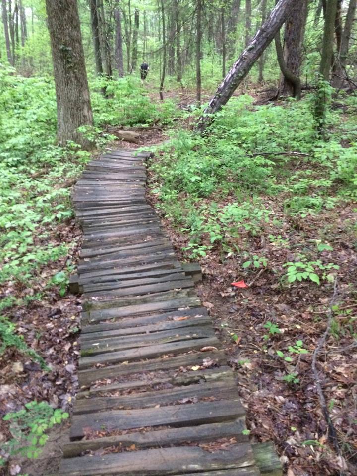 I particularly enjoyed some of the structures in the park that they ran us over, log bridges and paths made out of split wood.