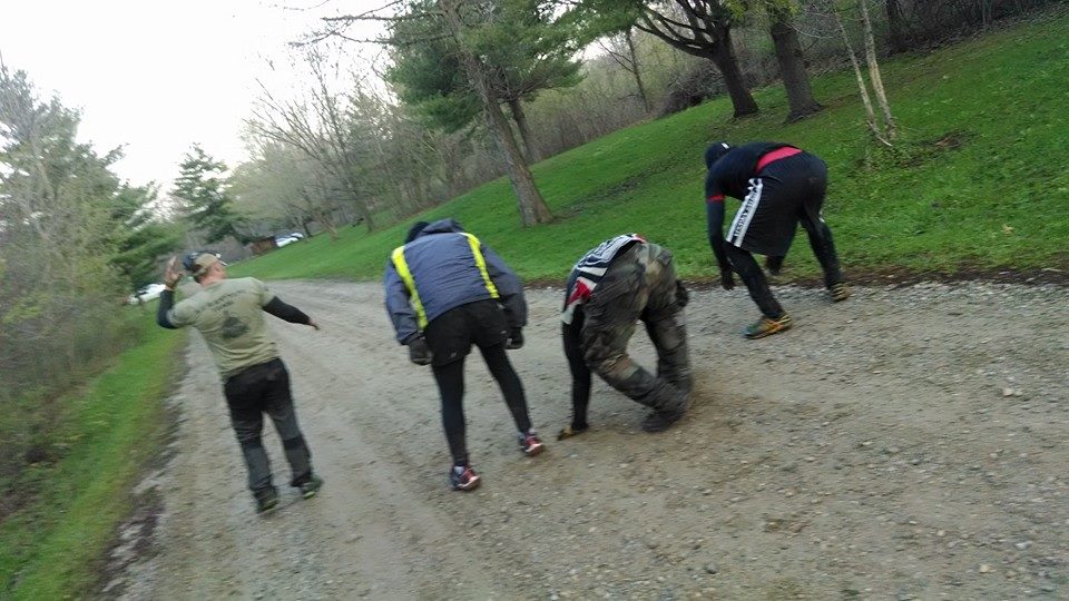 We started out on gravel, crossed a paved road into the state park, and then the trails got awesome. Steep hills that seemed to go on forever, fallen trees across the path, more stream crossings than anyone can keep track of (mostly rock-to-rock jumping type of streams).