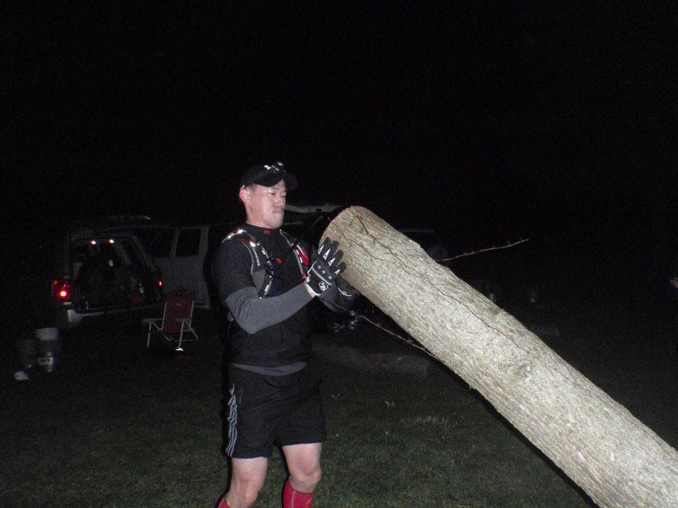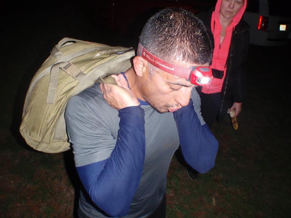 Just before the checkpoint, I met the last-place marathoner and was able to encourage her on her way (she did finish). Refill my camelback, check the condition of my feet (not good but okay) and get fresh footwear.