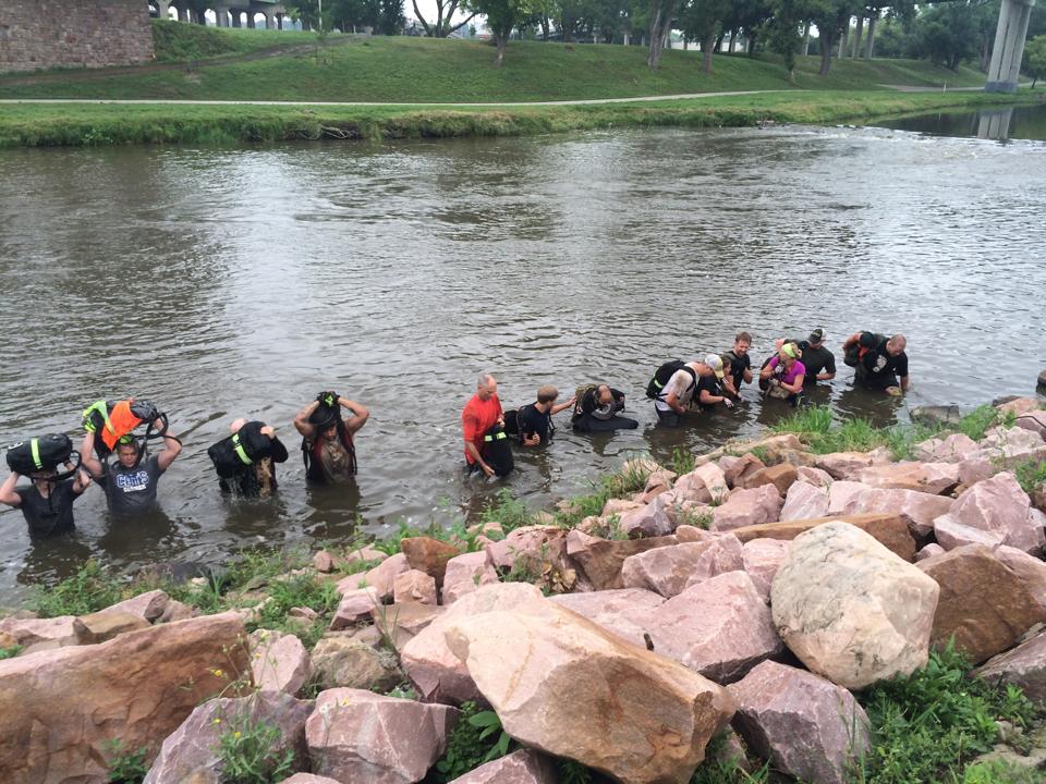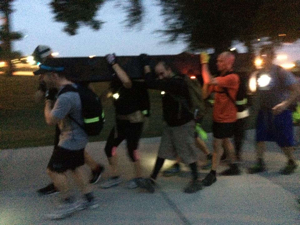 We soon figured out getting people on the sandbag and switching them out on the move. At one point we had to be told of our remaining time/remaining distance by Cadre, indicating we needed to step it up, but overall the movement went very well. At several points we went through crowds outside bars, and I’ve got to hand it to Sioux Falls, this is the first city where I have ever gotten cheers.