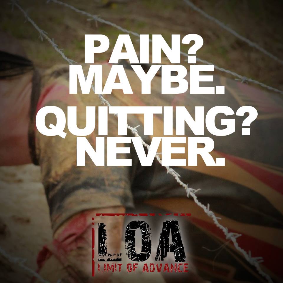 Get to the venue, ran into a few friends that I didn’t know were also running, check in and have the rucksack weighed. Note for next time, it is worth it to buy a luggage scale. I weighed mine on a bathroom scale and came out about 15 pounds heavier than I needed to be. With our bibs and T shirts, we received a dog tag marked with a single word, “Quit.”