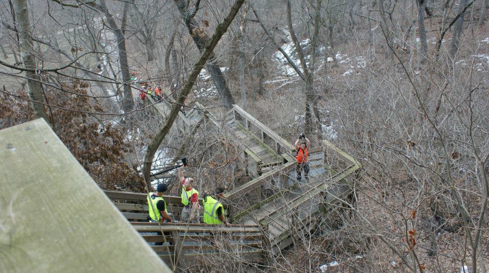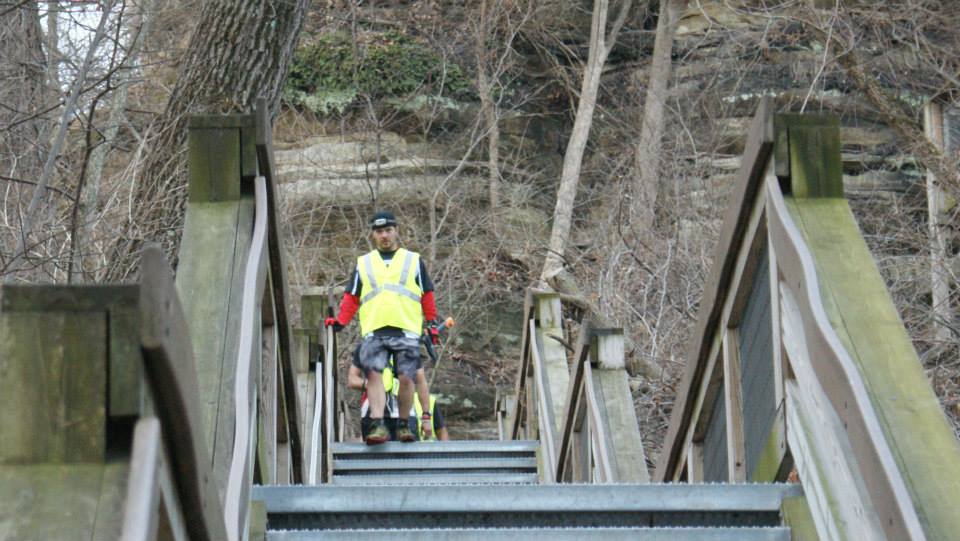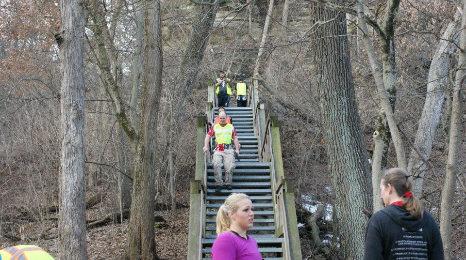 We moved as a group to a scenic overlook (Starved Rock), filmed 30 burpees to send to Spartan Race, and moved on to the most ungodly set of stairs that I am ever likely to see.