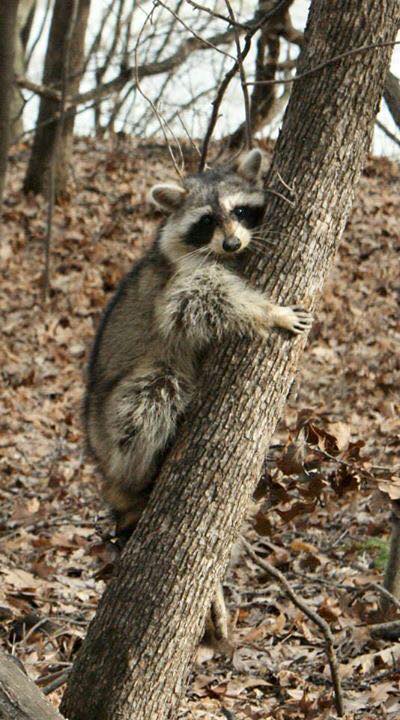 A raccoon was on his back in the path, feet in the air making twitching movements. As we approached he flipped on to his feet and looked at us defensively. With five of us tied together, this could become a mess easily.