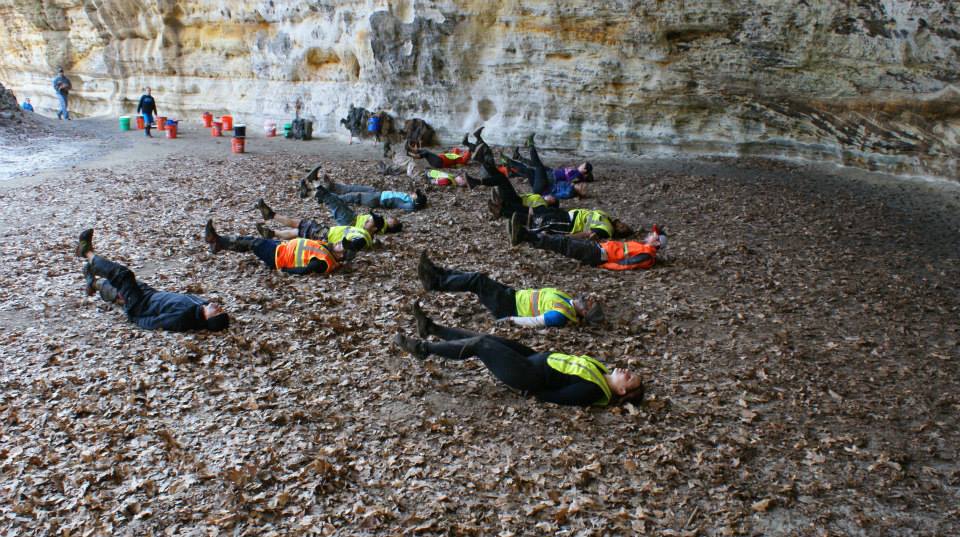 And were told next to fill a bucket with water and carry it to the amphitheater cave that we had passed a quarter mile before. We went through group PT: