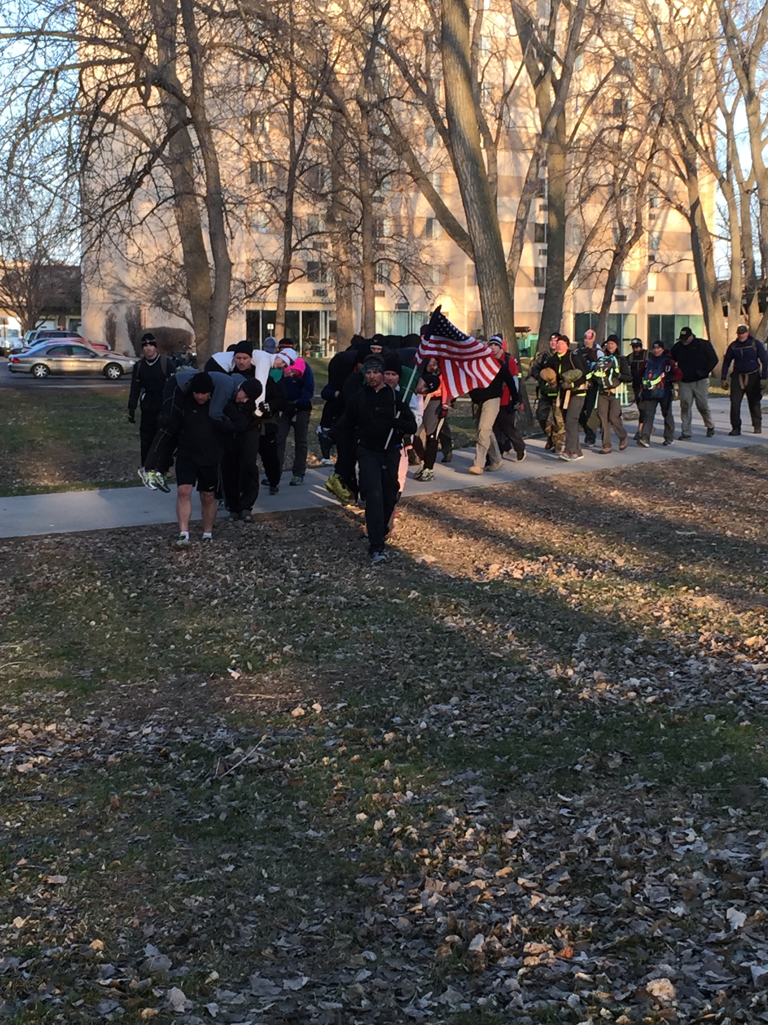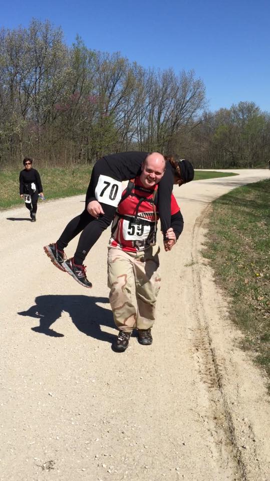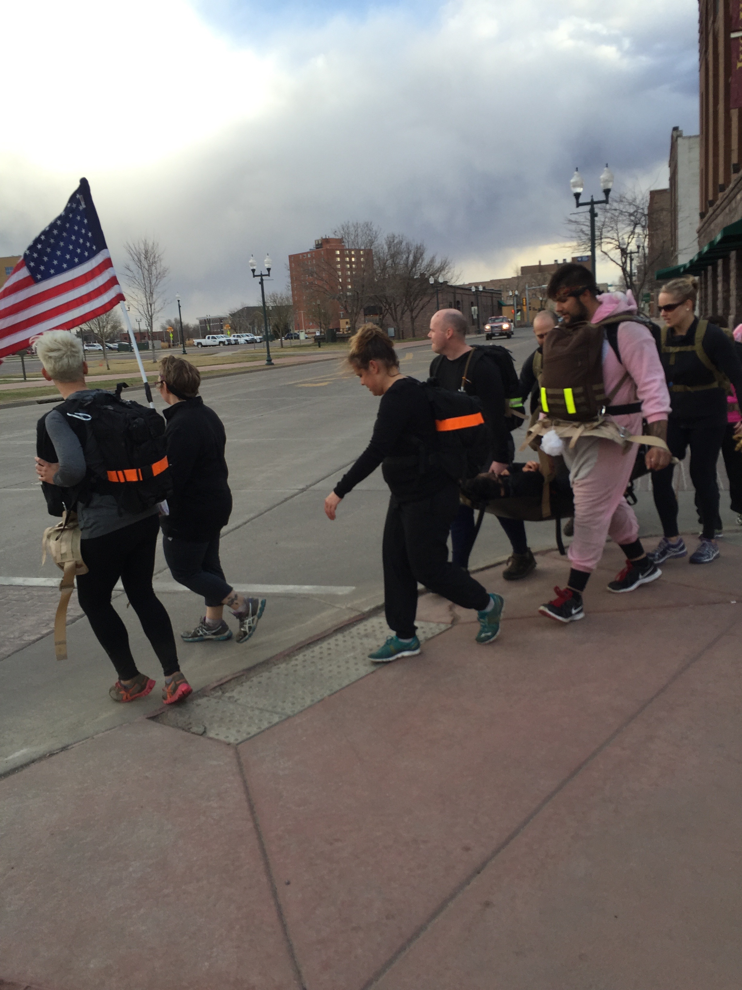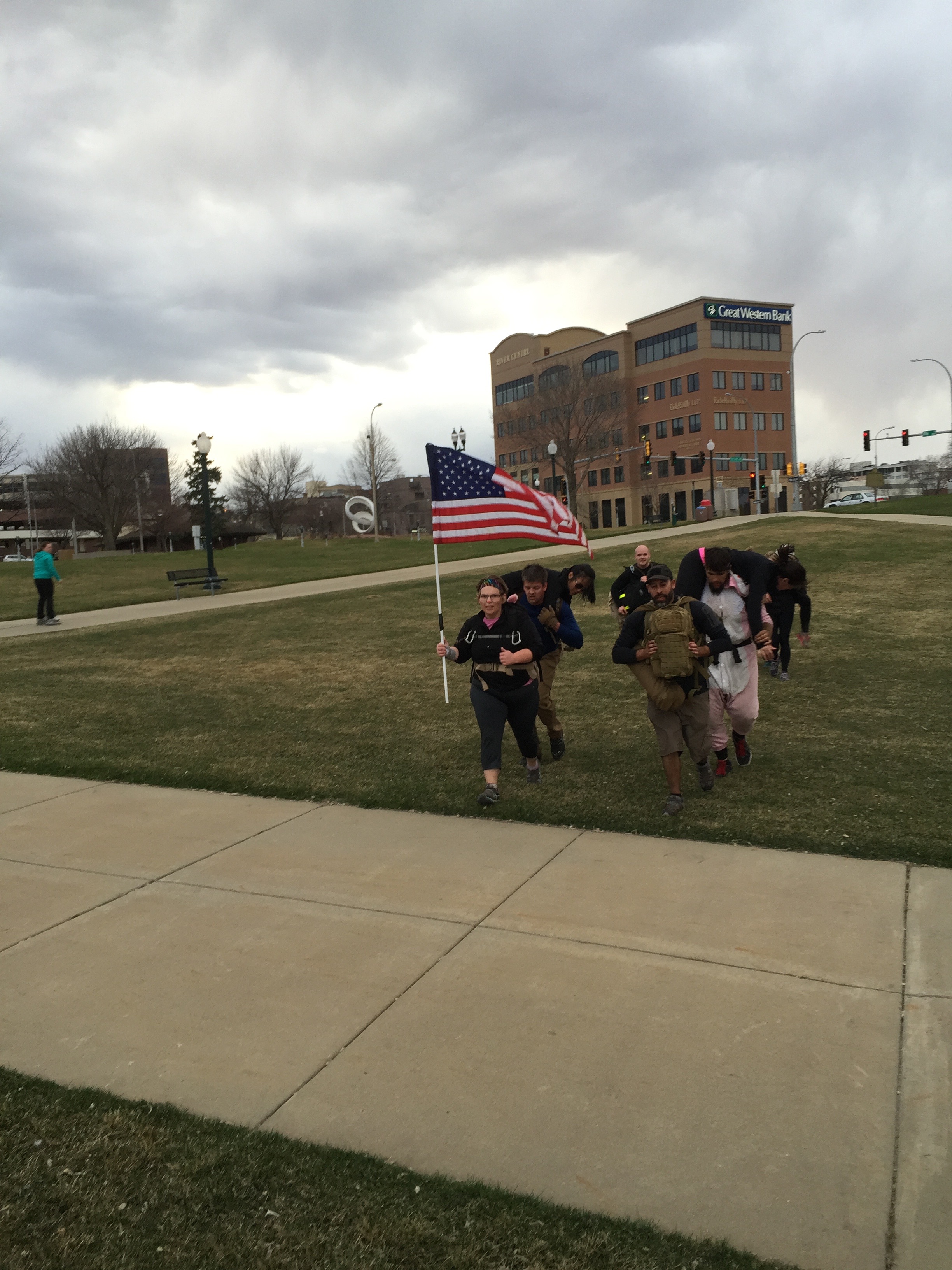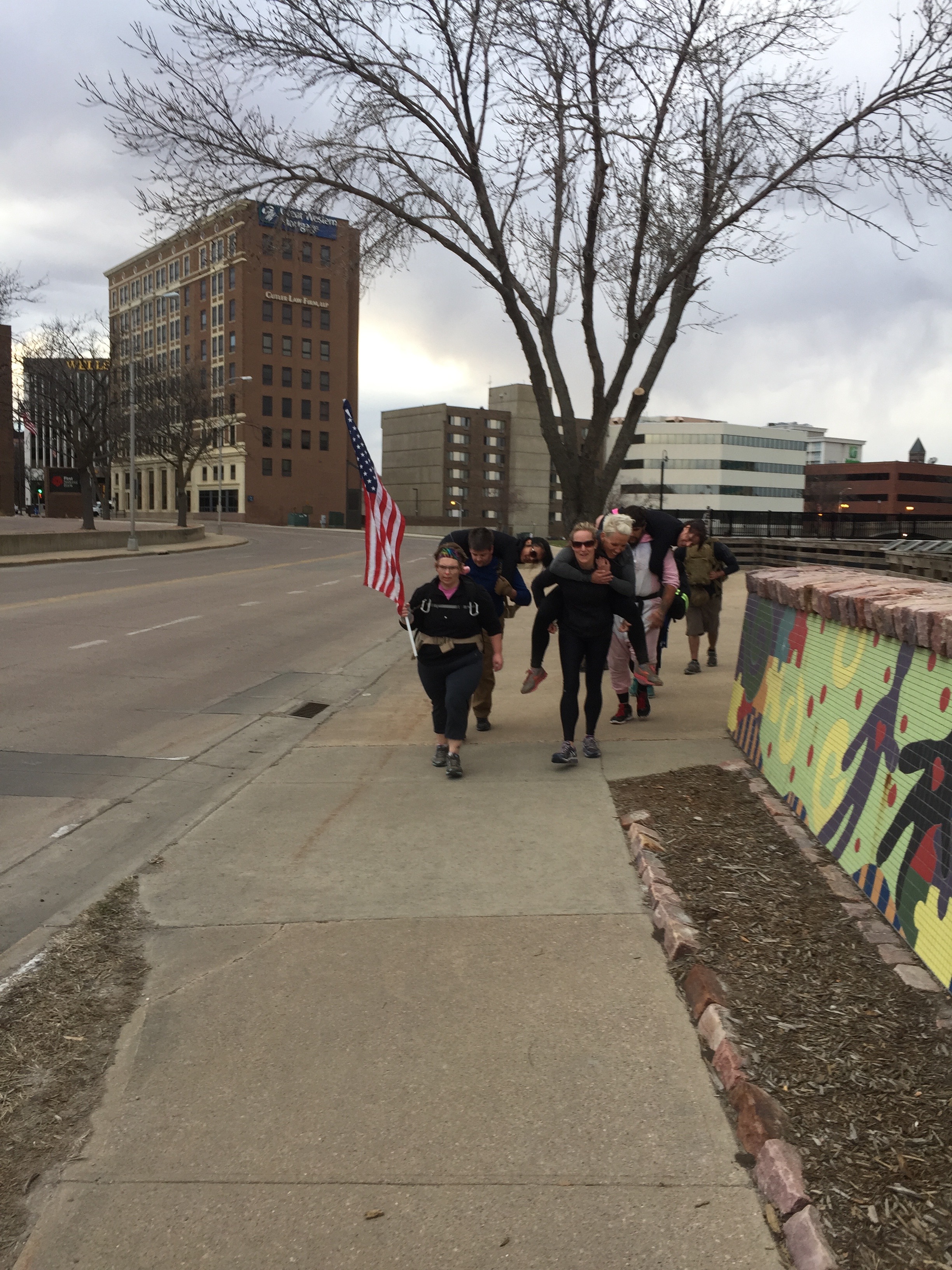 Next checkpoint, drop rucks and move on unloaded. The joking and shenanigans continued as we moved. One of the teammates jokingly said that she needed carried, so this happened: