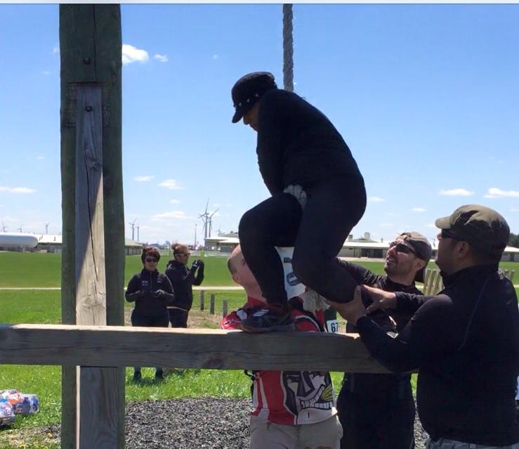 The last obstacle was appropriately called the Tough One. My leg cramped up and I failed to make it up the rope.