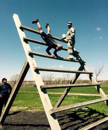 When we got to the Dirty Name, I was able to make it unassisted. The cadre at this point asked if we were a team. I responded that we were “a team in practice, but not in name.” He laughed and said that we could put someone on top to help the rest through, so I climbed up, and others helped from below.