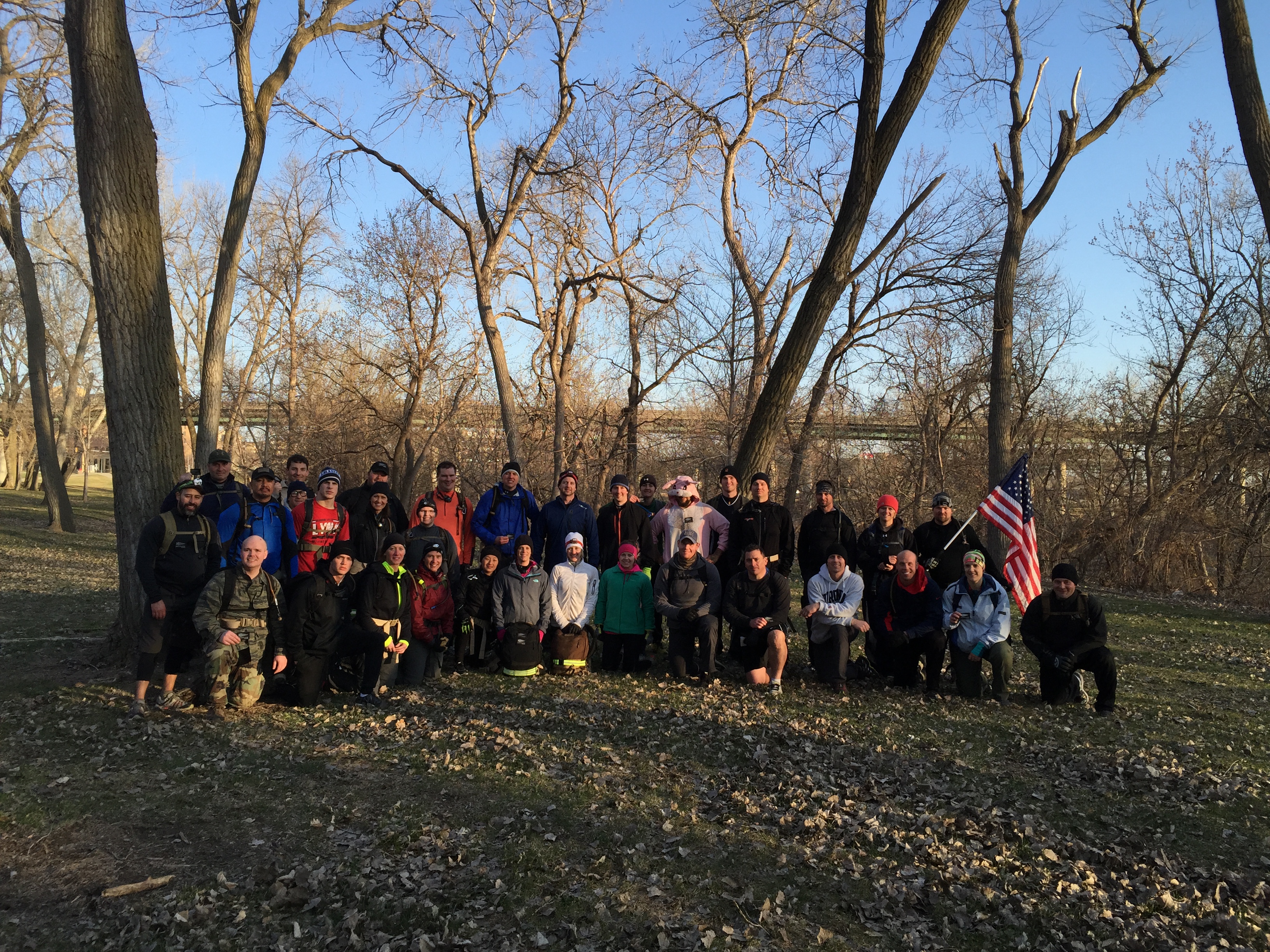 Next checkpoint, receive one of our dog tags and turn around to head back to our rucks. Stopped for a group shot: